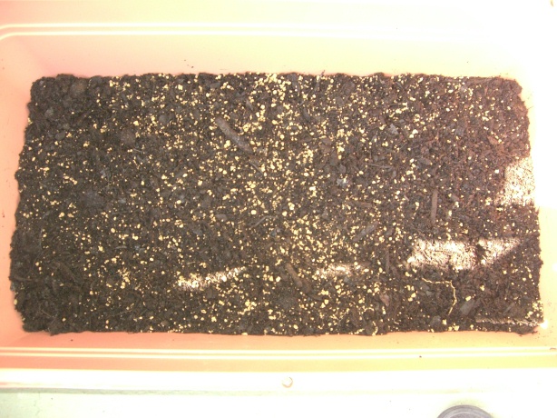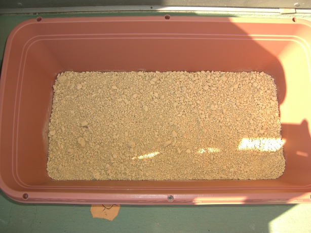 ちなみに古土には、「アーロンぼかし」という、生ごみ堆肥を作る時に使ったぼかしと堆肥少々を混ぜ込み、さらに水を加え、軽く握れるくらいの湿らせ、とりあえず、大きな容器に入れました。