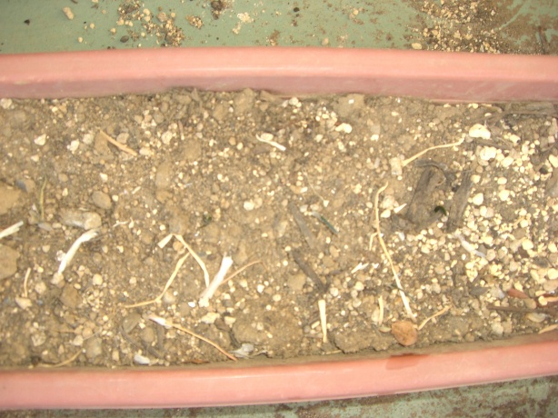 ついでに、昨年まで使っていたプランターに残っている古い土を再生してみました。