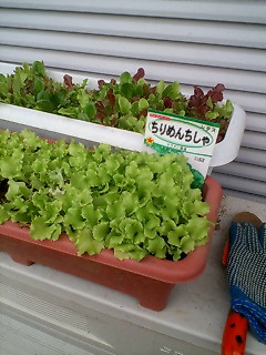 「ちりめんちしゃ」と「ベビーリーフレタスミックス」の種を蒔きました。