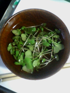 えへへ。初収穫と言っても、ラディッシュの間引き双葉です^^